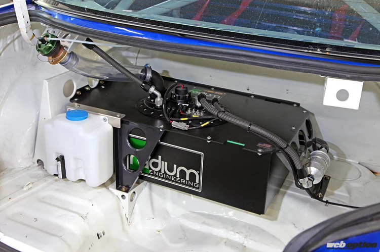 后備廂里的油箱是美國Radium Engineering公司生產(chǎn)的,但它并非原裝部件,而是山岡Aion為了通過車檢而更換的,而圖中前景中的塑料油箱是用于注水的。