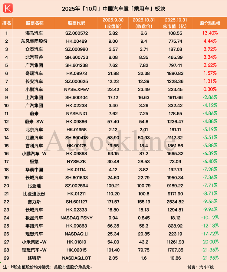 截至10月31日盤后,112只中國汽車股總市值則為14.53萬億元。