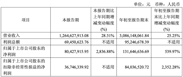 今年前三季度,科力遠營業(yè)收入為30.86億元,同比增長25.25%;歸母凈利潤為1.32億元,同比增長539.97%。
