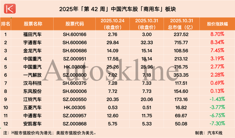 此外,上漲新能源和商用車板塊,一周漲幅分別為4.66%和4.81%。