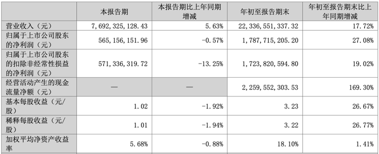 此外,德賽西威還披露了三季報,前三季度營業(yè)收入為223.37億元,同比上升17.72%;歸母凈利潤為17.87億元,同比上升27.08%。