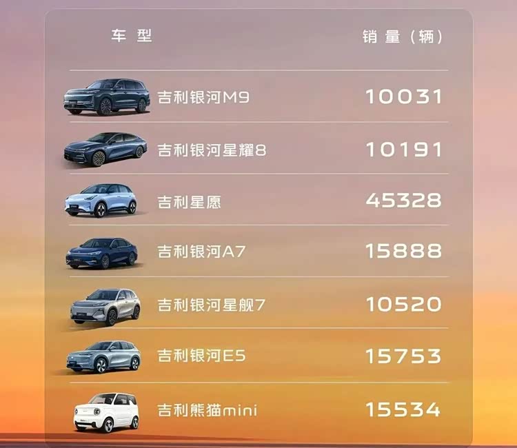 同樣的爆款還有吉利星愿、星耀8、星耀7等等,當許多新能源品牌還在靠單一車型苦苦支撐時,吉利銀河10月的成績單上,已經赫然列出了7款月銷破萬的單品,精準覆蓋了20萬以內的所有主流客群,從剛剛上市便月銷破萬的旗艦M9,到上市一周年依舊旺銷的星愿,展現出強大的體系化作戰能力。