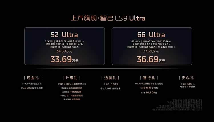 33.69萬元起!沒看錯,而且定位上汽旗艦。11月4日, 智己LS9(參數|詢價)全球首發并正式開啟預售。新車重磅首發兩個超級增程版本,全系皆Ultra:52 Ultra版,預售權益價33.69萬元;66 Ultra版,預售權益價36.69萬元。作為匯聚上汽集團70年造車底蘊,集全球頂尖技術打造的旗艦之作,智己LS9以“兩大跨代際硬核科技+兩大智能時代最強創新”的絕對實力,一舉顛覆30萬級大六座SUV市場格局。