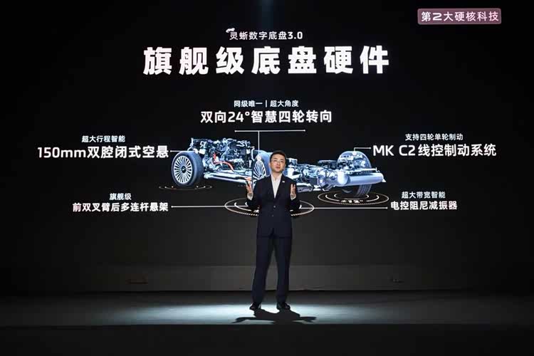 智己LS9搭載的靈蜥數字底盤3.0,徹底顛覆了全尺寸SUV的駕控體驗,解決了傳統大六座“笨重不靈活”、“側傾像開船”的高頻痛點。同級唯一的雙向24°超大角度智慧四輪轉向系統,讓這款長度近5.3米的豪華座駕,實現僅4.95米的超小轉彎半徑,靈活度堪比Polo,城市的狹窄路口、魔鬼地庫,都能從容一把通過;150mm超大行程雙腔閉式空氣懸架,配以智能電控阻尼調節系統,高速過彎不側傾,碎石路面不顛簸,讓大六座SUV比五座駕控標桿更好開。