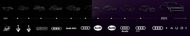 AUDI字母標識,從1909年奧迪誕生之初,就已使用,并以不同形式貫穿于超百年的品牌歷程之中。在電動智能化轉型的關鍵節點,AUDI再次進入到了我們的視線里,這寓意非凡。