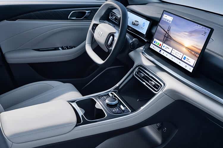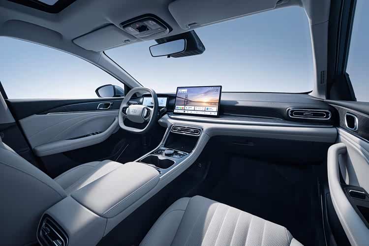 智駕層面,高配車型搭載的千里浩瀚H3系統,配備3個毫米波雷達、11顆高清攝像頭、12個超聲波雷達,算力達128 TOPS,支持CNOA城市領航與HNOA高速領航——城市道路可識別紅綠燈讀秒、自動繞行障礙,高速道路能自動超車、遇大車避讓、自主駛離匝道。