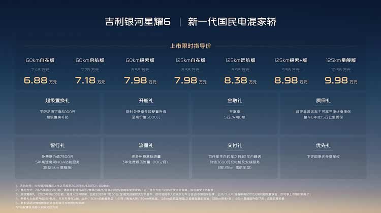 同步推出的還有至2025年11月30日24:00截止的七重購車權益,包括不限品牌的6000元超級置換補貼、至高5萬24期0息的金融支持、首任非營運車主三電終身質保、價值7500元的5年高階NOA服務(限125km星艦版)等,從購車、用車到養車全周期降低用戶負擔。
