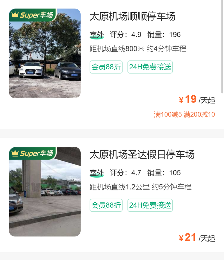 另外,停到附近的話,停車場還會有免費的接送車來接送,加上停車場離機場航站樓不遠,比較適合需要停車多天的旅客停車。如果要停到這些停車場,可以用淘車位小程序來預(yù)訂,上面會詳細展示各停車場的信息,方便大家對比選擇。