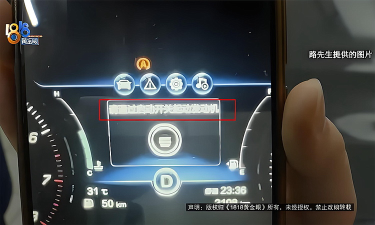 路某向媒體展示了一段視頻,視頻中是其停車熄火后拍攝,屏幕提示“請通過啟動開關啟動發動機。”對于這一內容,店方的解釋為自動啟停功能本就是不規則的,這種不規則的設計是不由人工控制的,是電腦自己匹配的結果;在自動啟停模式里,如果解開安全帶再松開剎車,第二次踩剎車就會出現上述提示。隨后工作人員進行了展示,結果與路某拍攝的內容完全一致。