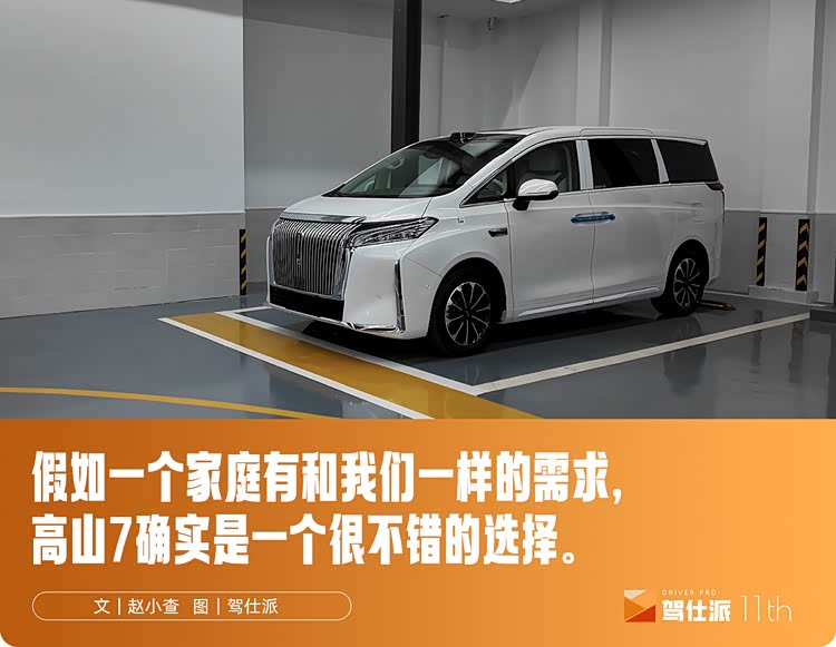 高山7除了滿足我們對于MPV的基本需求之外,一個是標配智能四驅系統對我們是剛需,一個是車身長度不是太長,出去停車時候的受限不是那么大。還有智能感知硬件足夠頂,在開長途的時候,高速NOA在保障安全前提下,起碼也能幫助老司機們節省一些精力。