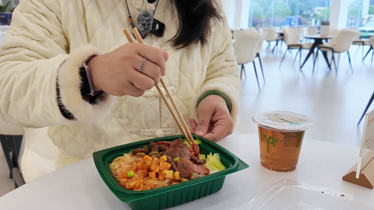 客戶餐是“一點味”的定食餐盒,搭配一杯茶飲,這個餐要比絕大多數經銷商店里的客餐好吃。