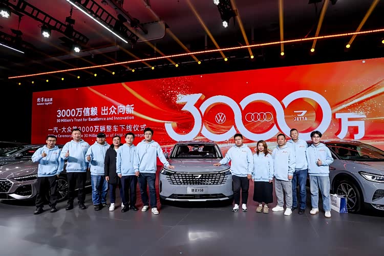 2025年10月30日,一汽-大眾迎來其發展史上的高光時刻——第3000萬輛整車下線儀式在長春總部隆重舉行。在此次以“3000萬信賴 出眾向新”為主題的盛典上,隨著 捷達VS8(參數|詢價)作為3000萬里程碑車型之一,同大眾、奧迪品牌旗下的5款不同車型來到臺前,一汽-大眾也正式成為了國內首個產銷突破3000萬輛的乘用車企。這不僅是一座數字的豐碑,更是一汽-大眾體系實力與深厚用戶信賴的集中體現,在這份閃耀的成就中,捷達則以520萬車主的堅實擁躉,成為推動一汽-大眾駛向3000萬輛不可或缺的重要力量。