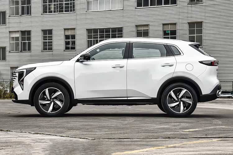 再來看車身側面部分,車身側面在 2656mm 軸距不變的基礎上,通過尺寸微調提升了實用性:車長增至 4550mm(+11mm),車寬擴至 1868mm(+3mm),高度降至 1675mm(-5mm),比例更顯修長。雙腰線采用銳棱沖壓工藝,上方腰線貫穿前后燈組,下方筋線在輪拱處外擴,營造出扎實的厚重感。標配的 19 英寸五輻半封閉輪圈搭配 225/55 R19 輪胎,既降低風阻又強化運動感,相比老款的 18 英寸輪轂視覺效果更出眾。寬體懸浮式 D 柱與鍍鉻側窗飾條形成呼應。