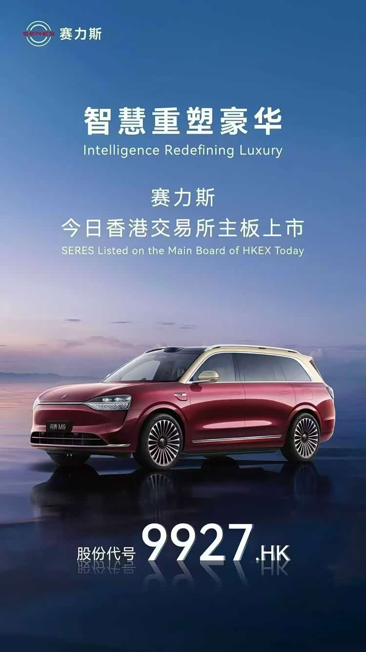 11月5日,賽力斯(股票代碼:9927.HK)在香港聯合交易所主板正式掛牌上市。此舉意味著賽力斯成為國內首家“A+H”兩地上市的豪華新能源車企,此次募資凈額140.16億港元,迄今為止規模最大的中國車企IPO,也是2025年以來全球規模最大的整車企業IPO。