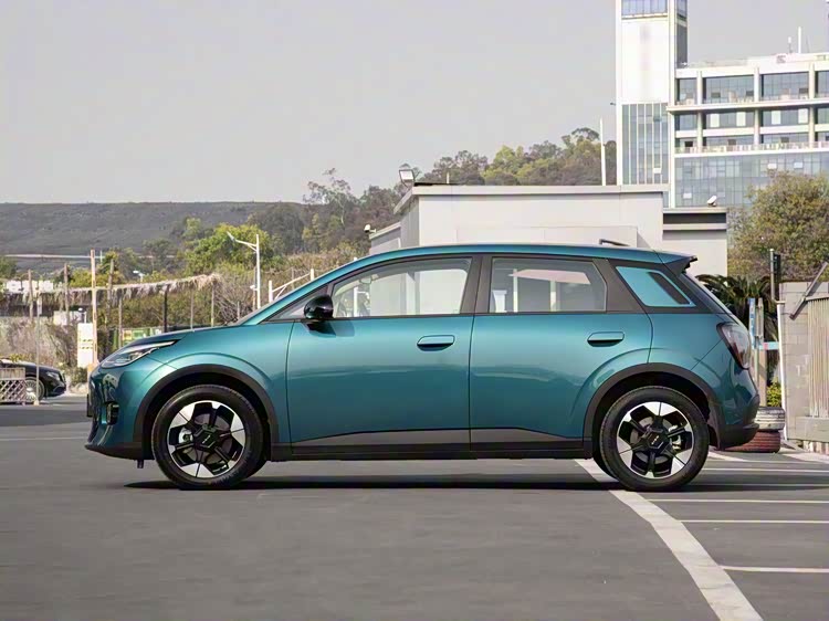 側面造型方面,車頂略帶一點弧度,線條感比較圓潤,而且還營造出了懸浮式車頂,屬于目前非常流行的設計語言;腰線采用了貫穿式設計,點綴出了車身側面的層次感;門把手則是內凹式設計,能夠起到降低風阻的作用;輪轂采用了三幅式造型,風格顯得比較個性。