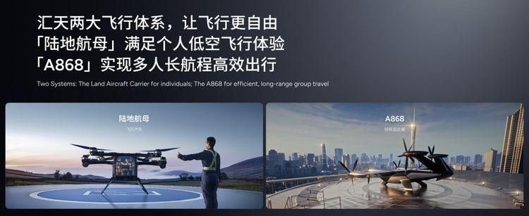 瞄準低空經濟賽道,匯天發布兩套飛行體系:面向個人的“陸地航母”與商務場景的“A868”全傾轉飛行汽車。前者已進入量產前夜,全球訂單突破7000臺,其“四軸合一”單桿操縱與智能座艙降低了操作門檻,六軸六槳雙涵道構型保障安全,配套工廠實現每30分鐘下線一臺的產能,2026年將啟動西北低空旅游線路。