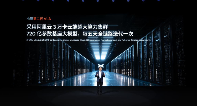 這款量產級物理世界大模型具備雙重屬性:既是理解物理規律的推演模型,也是生成執行動作的操作模型,可跨域適配汽車、機器人、飛行汽車等不同載體。支撐其能力的是小鵬的算力與數據儲備:3萬卡云端算力集群保持90%以上運行效率,720億參數基座模型每五天完成一次全鏈路迭代;訓練數據集涵蓋近1億段真實駕駛視頻片段,相當于人類司機連續駕駛6.5萬年的極限場景總量。