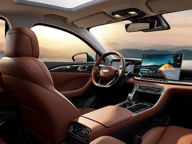 內飾方面,應用了吉利全新的家族化設計語言,能看到采用50W風冷無線快充、水晶擋把、打孔皮質座椅等配置。智能化方面,全液晶儀表+14.6英寸懸浮式中控屏,搭載GEEA 3.0電子電氣架構,內置Flyme Auto智能座艙,手車互聯方面,也更為豐富。