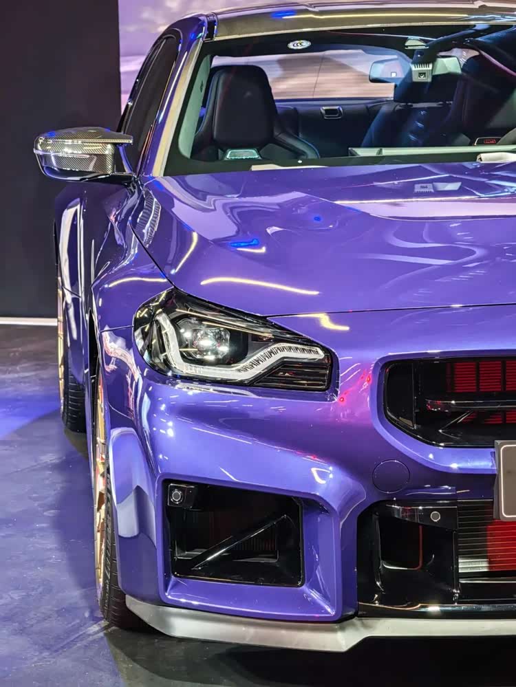 G87 M2 CS在設計上相比于普通M2有一些變化,比如雙腎格柵的進氣更大,且?guī)в屑t色標識。新加入了一個前唇,但它不是碳纖維也不是高亮黑色,而是橡膠材質(zhì)的,關于此官方的解釋是:底盤較低容易剮蹭,碳纖維不如橡膠件更穩(wěn)妥一些,萬一有磕碰也不心疼,真實在人。比較可惜的一點是原廠M2 CS并沒有大哥們的黃色日行燈,這都不是事,后期搞一下就行。