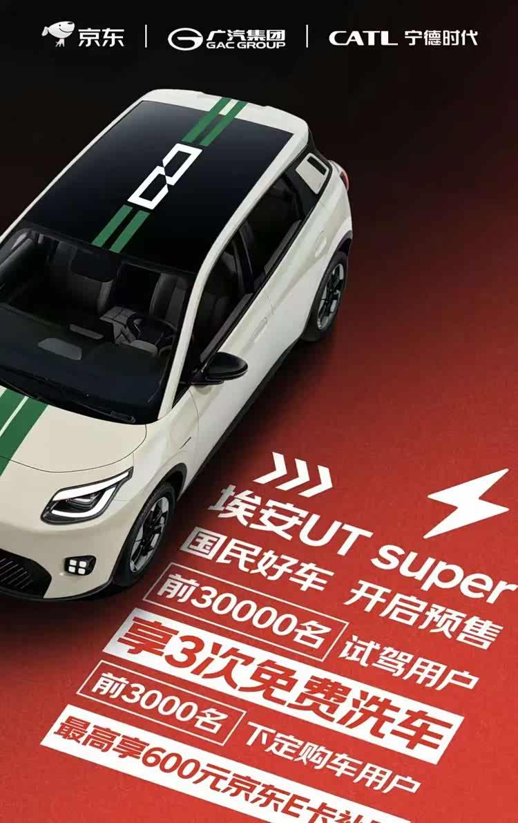 廣汽埃安UT在今年9月的銷量為5337輛,位列當(dāng)月小型車榜單第8位,市場(chǎng)認(rèn)可度比較高!就在11月5日,廣汽埃安UT super開(kāi)啟小定預(yù)售,我們可以把它看作埃安UT的換電版,由廣汽集團(tuán)、寧德時(shí)代和京東聯(lián)合推出,在京東進(jìn)行獨(dú)家銷售,計(jì)劃于京東11.11(雙十一)期間正式發(fā)布,新車CLTC續(xù)航里程為500公里、換電時(shí)間為99秒,下面我們就來(lái)詳細(xì)的了解一下。