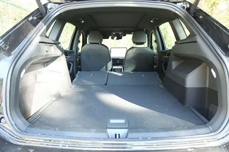 單看行李廂,長1015毫米,最小寬1000毫米,高730毫米,遮擋簾以下高430毫米,容積471升。側壁上配有12伏電源接口,地板下面是備胎和換胎工具。地板與遮物簾質地厚實,做工很仔細。