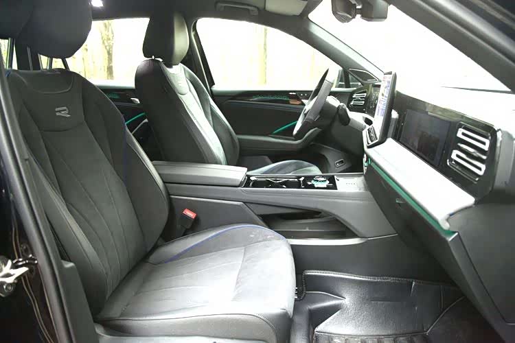 內飾方面,具備較強的科技感,亮點之一是6屏聯動:15英寸智能2K懸浮屏,11.6英寸高清副駕娛樂屏,10.3英寸全數字液晶儀表,抬頭顯示,黑晶流光智控旋鈕,手機映射。