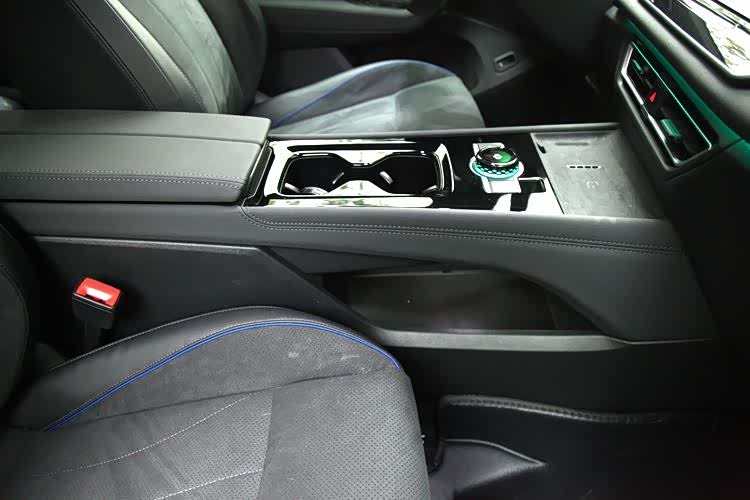 中間平臺的前段,是手機無線充電位,中段是操作旋鈕和雙杯座,后段是中央扶手與中央儲物盒。此外,中段的下部是鏤空的。