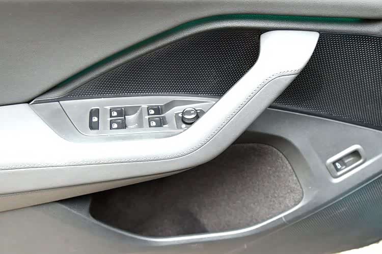 內飾材質方面,腰線以上多為軟材質,皮革上的縫線顯得挺精致,就連車門儲物槽里,都鋪著絨氈。