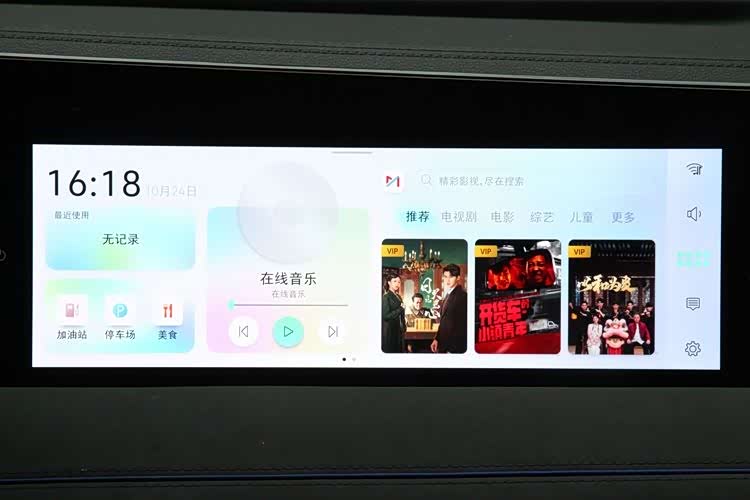 副駕娛樂屏11.6英寸,屏中資源比較多,各種題材的視頻,在這兒基本都能找到。