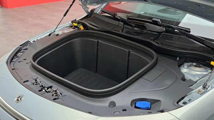 奔馳CLA EV的后備箱常規容積是405升,后排座椅支持40:20:40比例放倒,放倒后能提供一個1100 升的空間,可用來裝載大件物品,如兩輛折疊自行車、全套露營裝備等。這還不算完,奔馳CLA EV還給到了一個101升的前備箱,可輕松容納3~4個登機箱大小的隨身行李。箱內預留 12V 電源接口,可連接車載冰箱或充氣泵,進一步拓展使用場景。