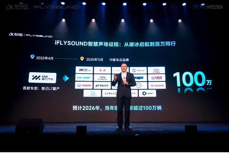 AI新聲代,重塑新格局!自2022年首款搭載車型量產至今,iFLYSOUND智慧聲場已與19家車企品牌達成合作,落地超100萬輛車。從破冰啟航到百萬同行,這不僅是數字的突破,更標志著iFLYSOUND智慧聲場奏響中國AI音響品牌崛起的新篇章。