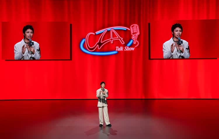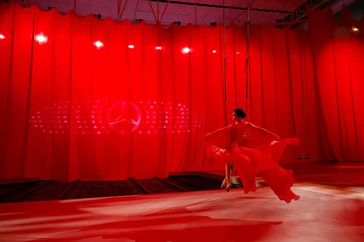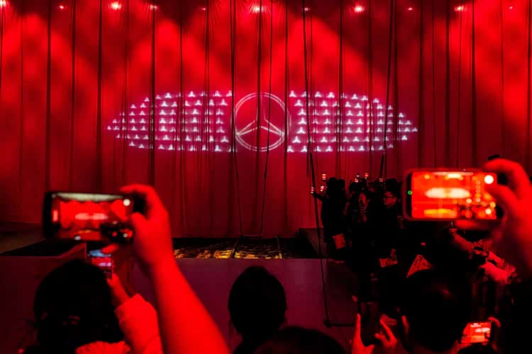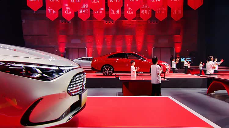 占地面積并不大的主核心場地,在開場之前用紅色的半透明帷幔和人群隔開,半遮半掩,虛虛實實。大屏幕上緩慢閃動CLA前臉142顆星徽圍繞三叉星的主視覺。是預熱,也是召喚。