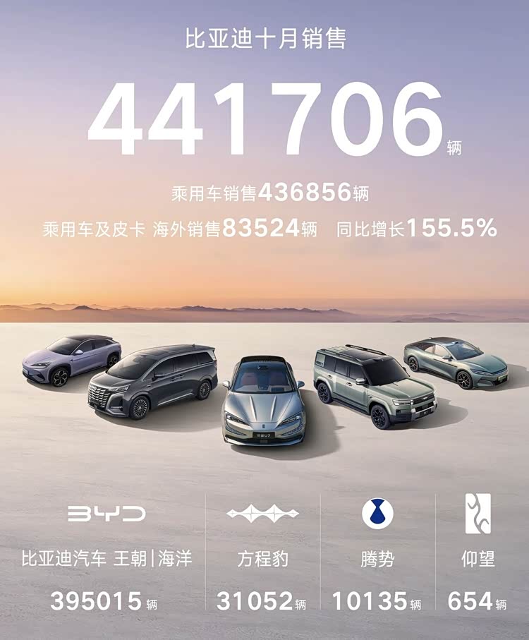 而定位于更高端的仰望品牌,10月售出654輛,1-10月累計銷量已達3159輛。其中,仰望U8售出455輛,仰望U7和U9則分別貢獻197輛和2輛。