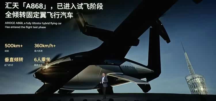 車家號·0瀏覽·2025-11-06 17:56 · 北京在11月5日舉辦的小鵬科技日上,小鵬汽車董事長、CEO何小鵬展示了全新的“匯天A868飛行汽車”。據介紹,這款飛行汽車續航超過500公里,最大航速超360km/h,最高支持6人乘坐,采用垂直傾轉的起飛形式,具備執行城市間航線的潛力。何小鵬表示, 小鵬匯天陸地航母(參數|詢價)目前在全球已經收獲7000個訂單,并有望創造載人飛行器年銷量世界紀錄。