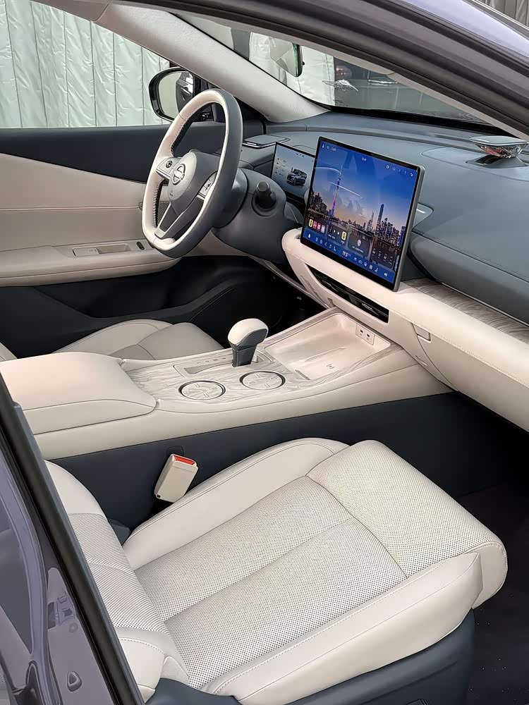 內飾煥然一新,環抱式座艙內配備15.6英寸懸浮中控屏與10.25英寸全液晶儀表,搭載鴻蒙座艙HarmonySpace 5,支持跨設備無縫流轉與AI語音助手。車內提供晨曦嵐白、穹宇黑灰兩種風格,軟包材質與木紋飾板搭配,營造出豪華氛圍。17揚聲器HUAWEI SOUND音響系統、升降式星環散射體及256色氛圍燈,進一步提升了高級感。