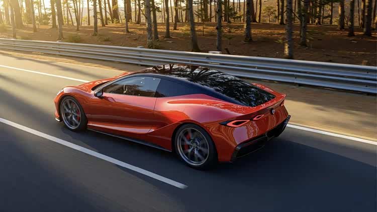 騰勢Z敞篷版的車頭十分寬扁,與之前在上海車展亮相的騰勢Z量產版保持一致,都還原了概念車的設計精髓,似乎與路特斯Evija也有著異曲同工之妙。中間艙蓋扁平,兩側燈眉高聳,封閉式的前鼻翼上方還配備了醒目的騰勢車標,前包圍采用了造型夸張且符合空氣動力學效能的大尺寸孔洞設計,還配備了黑色碳纖維材質的大尺寸前鏟,并加入了橙色的描邊設計,展現出了很強的攻擊性。車尾可以選裝固定式賽車大尾翼,底部配備了大尺寸碳纖維底部擴散器,也同樣加入了橙色的描邊,呼應了車頭,散發出更強的賽車氣息。水滴形的前大燈采用了嵌入式設計,“一大一小”四組菱形塊組成的尾燈,都讓整車更有科技感。