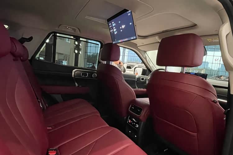 進(jìn)入車(chē)內(nèi),內(nèi)飾設(shè)計(jì)同樣延續(xù)了“潮酷”基因,并兼顧了豪華感與實(shí)用性。Nappa真皮包裹的座椅配備通風(fēng)、加熱與按摩功能,配合15.6英寸二排娛樂(lè)大屏與5.4L冷暖冰箱,構(gòu)建出“冰箱彩電大沙發(fā)”式的舒適生態(tài)。