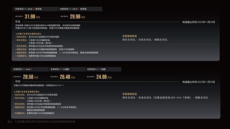 總的來說,全新坦克400,24.98萬起的價格,實力滿配的體驗!這不僅是輛車,更是開啟無限可能的鑰匙!是廣大年輕人彰顯個性、征服全場景、智能舒適一步到位的潮酷越野伙伴。