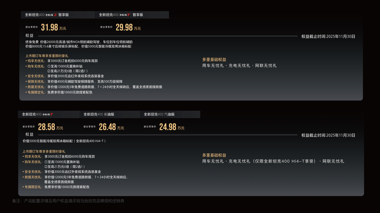 在傳統認知中,越野車與城市通勤始終存在不可調和的矛盾。但坦克400以“全動力矩陣+全場景覆蓋”的破界思維,構建起前所未有的價值三角:Hi4-Z泛越野超級電混架構實現“可城可野”的場景自由,Nappa真皮座椅搭配通風加熱按摩功能將舒享體驗推向新高度,而原創機甲美學設計更賦予其國潮文化標簽。這種“性能、智能、美學”的三維躍升,使其在28.58萬-31.98萬的價格區間內,建立起無法復制的競爭壁壘。