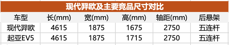 實際上,除了源自相同平臺外,現代EO羿歐和起亞EV5也有很多其它相通的地方,兩款車除了高度有差異,軸距、車長、車寬完全相同,此外兩款車均采用相同容量的弗迪電池,動力參數保持一致,核心差異主要就體現在外觀和內飾設計上了。