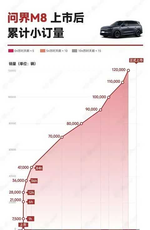 太棒了!伙伴們! 問界M8(參數|詢價)已經引起了巨大的關注。在剛剛過去的周末兩天內,新增預訂數量達到了1萬臺,目前預訂總數已經突破12萬。競爭對手的九系列車型都被比下去了!