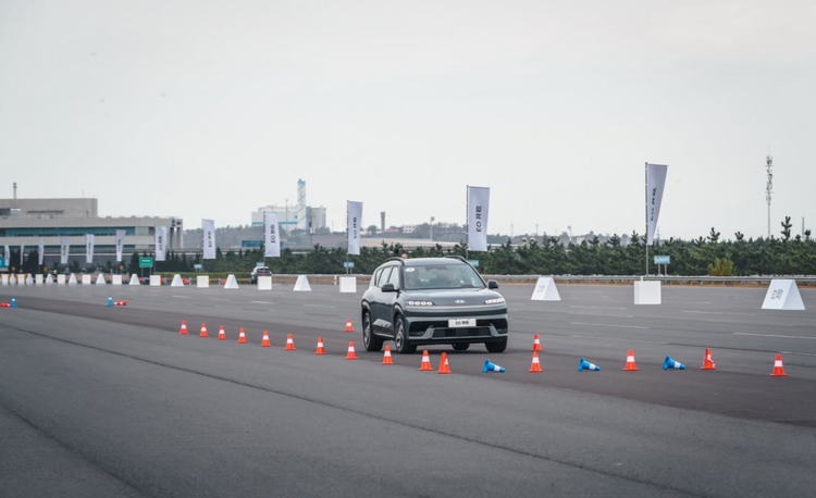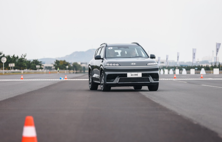 操控表現是本次試駕的核心亮點。基于E-GMP純電專屬平臺,電池平鋪底盤帶來更低重心,配合前麥弗遜后五連桿獨立懸架及300余次減震器調校,車輛在顛簸路面過濾細膩,過減速帶時車身無多余晃動。轉向系統采用13.8轉向比,指向精準無虛位,繞樁測試中車頭響應靈敏,ESP系統介入柔和,即便極限操作也不會產生突兀的拉扯感。