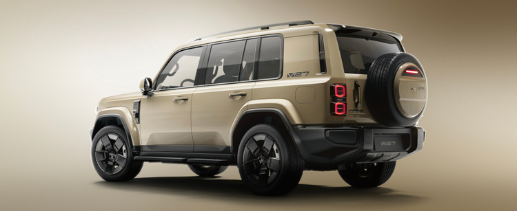 較長的車頭設(shè)計與規(guī)整的車身比例,既保證了硬派氣場,又為車內(nèi)空間提供了充足保障。車身側(cè)面的黑色五輻輪輞、疑似電動側(cè)踏板和 D 柱黑色裝飾條,在細節(jié)處兼顧了實用性與設(shè)計感,而車尾的外置儲物箱則進一步凸顯了其戶外出行的產(chǎn)品定位。