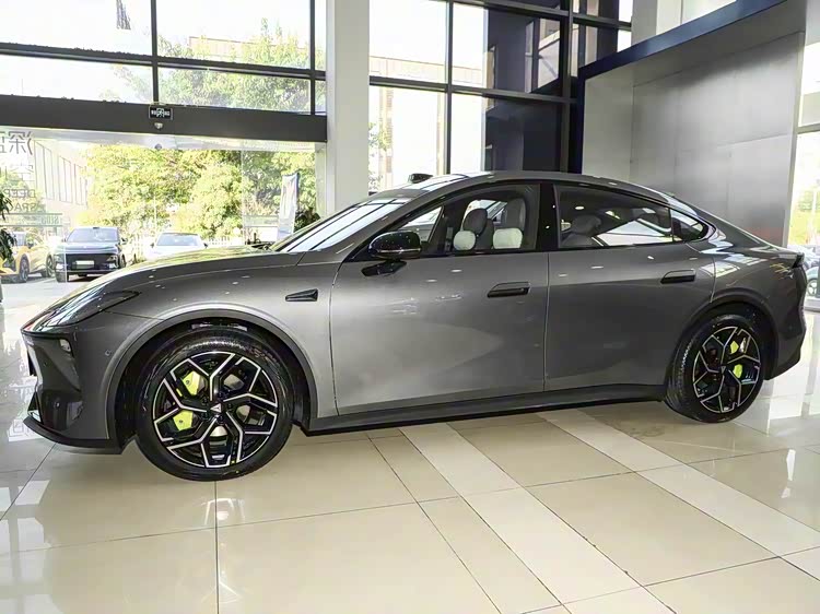 再來看車身側面部分,車身側面是深藍 L06 的點睛之筆,4830/1905/1480mm 的長寬高搭配 2900mm 超長軸距,在中型車中優勢明顯,甚至比比亞迪秦 L 軸距多出 110mm。上揚的腰線從車頭貫穿至車尾,勾勒出 “前低后高” 的蓄勢姿態,溜背式車頂線條如液態金屬般流暢延伸,既營造出純粹轎跑質感,又未過度犧牲頭部空間。無框車門與半隱藏式門把手的組合堪稱年輕人 “心頭好”,門把手靠近時自動彈出,離開后自動縮回,儀式感拉滿的同時,讓車身側面更顯簡潔順滑。實拍車型搭載的 19 英寸花瓣式輪轂,搭配熒光綠剎車卡鉗,進一步強化運動氛圍,而豐富的車身顏色選擇,也能滿足不同用戶的個性化需求。