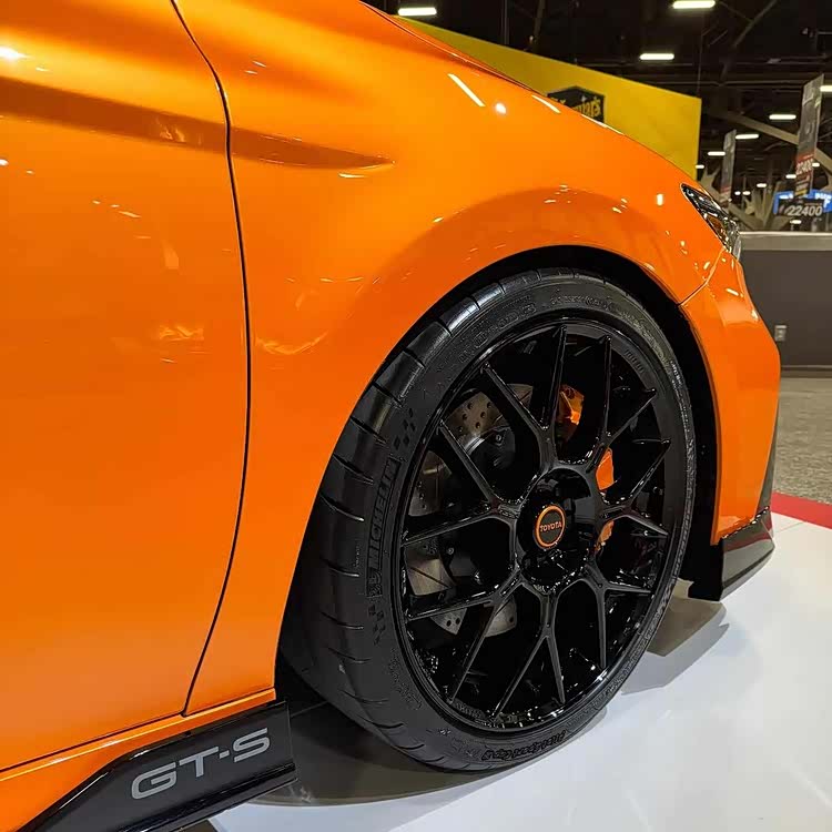 在外觀設計上,這款新車搭載了特別定制的包圍套件,包括前唇、側裙、后擾流器和尾翼等元素,使得車輛呈現出更加動感和個性化的外觀。另外,采用黑橙雙色的車身涂裝也進一步增強了視覺上的沖擊感。