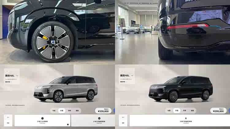 這時候,再看騰勢N8L的輪胎,就會覺得是尺寸有余、寬度不足,畢竟尺寸差不多的寶馬X7,起步就是前后285/45 R21的圈胎,頂配更是用上了275/35 R23+315/30 R23的圈胎,看起來非常霸氣,而騰勢N8L但凡蹲下去,從車尾看一下輪胎的話,總讓人覺得有點面條胎的感覺。