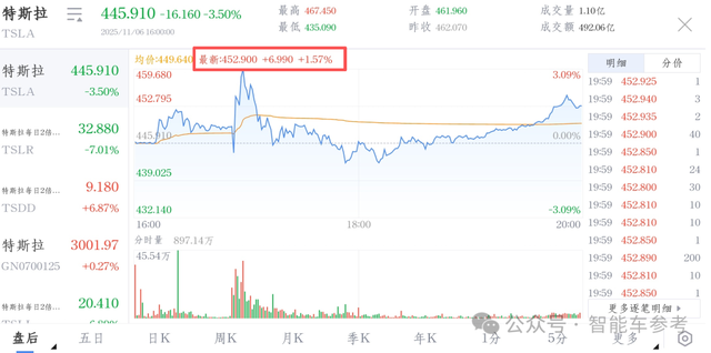 畫的餅如此之多,市場的回應是:特斯拉盤后股價上漲1.57%,連帶著英特爾都短線上漲超2%。