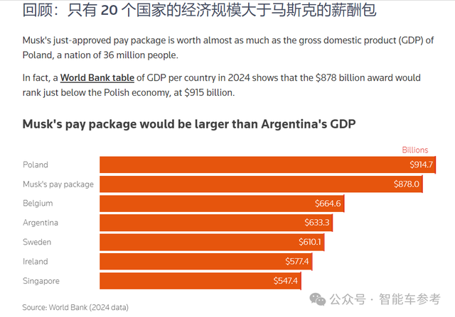 有人根據世界銀行的數據統計后發現,全球只有20個國家的經濟規模大于馬斯克的薪酬包: