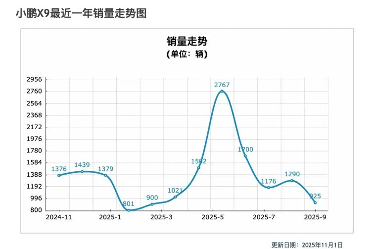 從市場反饋看,純電MPV的銷量瓶頸是小鵬切入增程賽道的直接原因。過去一年, 小鵬X9(參數(shù)|詢價)純電版最高月銷僅2767輛,多數(shù)時間徘徊在千輛左右。即便是純電MPV銷量榜首的理想MEGA,月銷量也僅維持在3000輛上下。