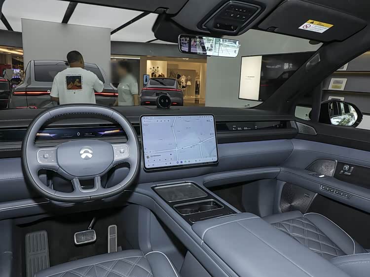 進入車內,內飾以 “境由心生 寧靜致遠” 為設計理念,提供蘇木紅、珍珠貝等四種源自大地靈感的內飾主題,大面積的軟包覆材質,讓指尖所觸皆細膩舒適。中控臺部分配備48英寸天際線屏、16.4英寸中控屏和38英寸AR-HUD抬頭顯示系統,后排方面,全新蔚來ES8提供2+2+2式6座和2+3+2式7座兩種布局。其中,6座版副駕和第二排均為零重力座椅,第二排右側座椅還可進行150毫米橫向移動。無論6座還是7座車型,全新ES8車內所有座椅均支持加熱功能,第二排右側座椅還具有腿托加熱,座椅通風功能在前排和第二排為標配,7座版第二排僅在兩側座椅支持通風功能。